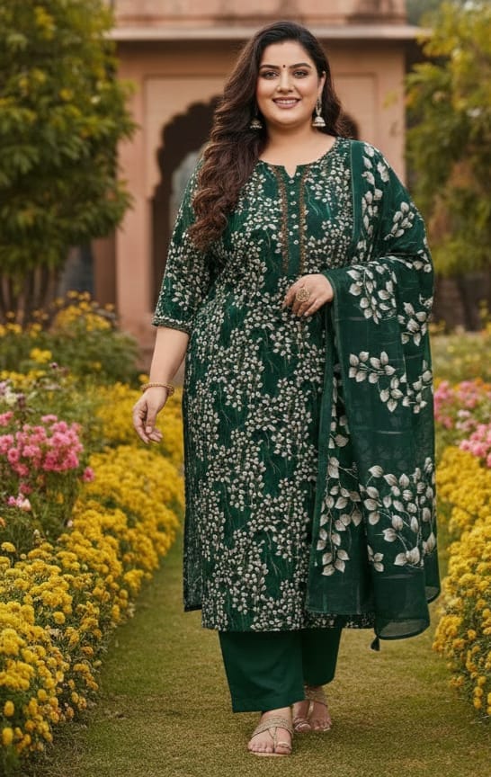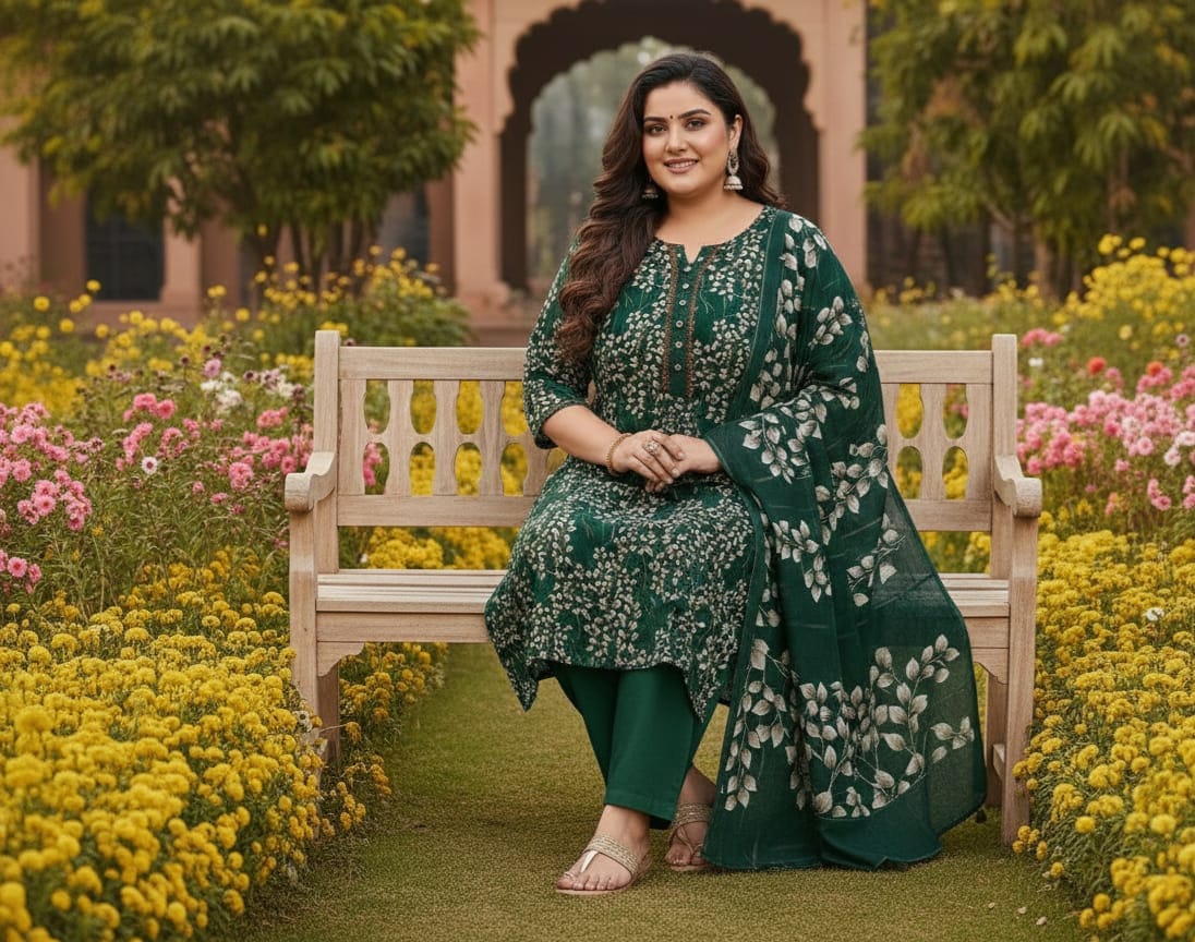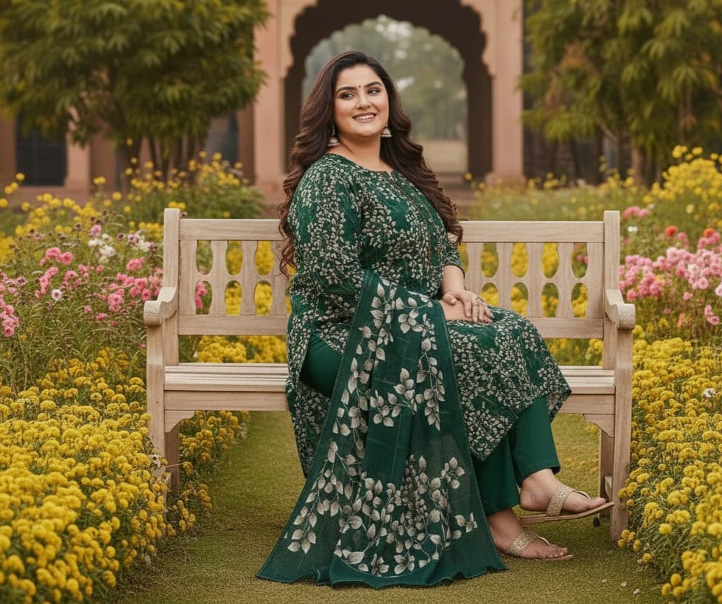 Suit Style: This 2-piece outfit features a straight-cut printed shirt paired with solid green trousers for a balanced look.